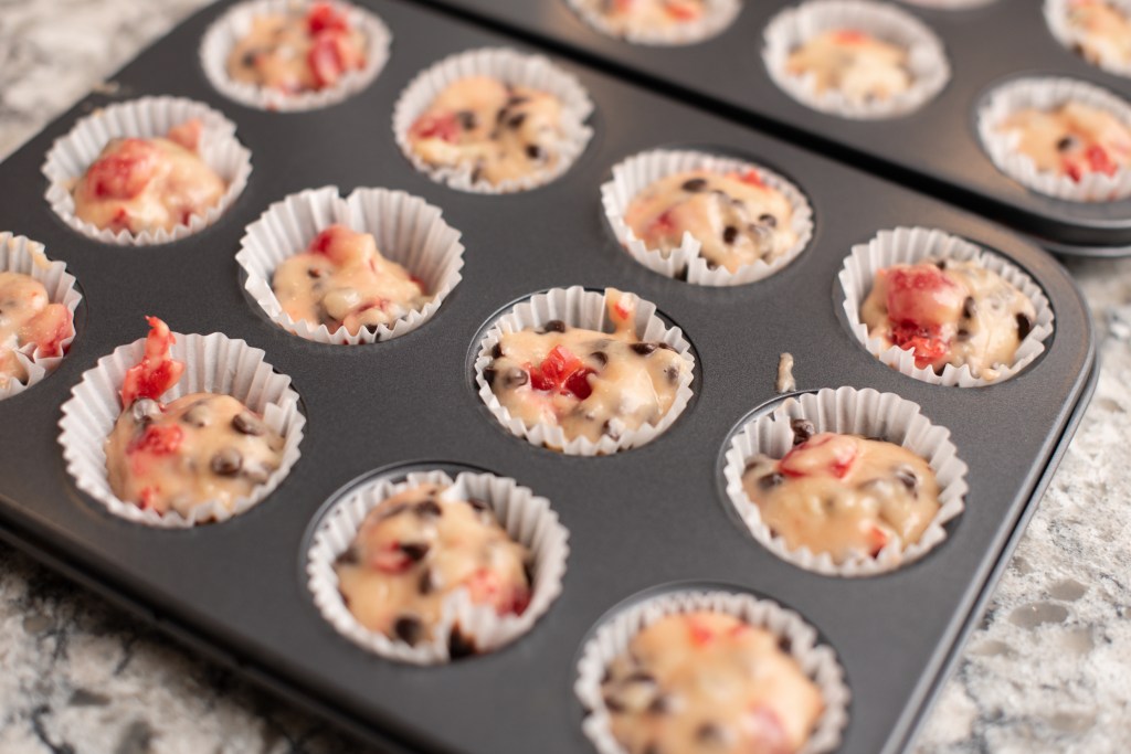 - 4. Drop by tablespoonfuls into paper-lined mini muffin tins.